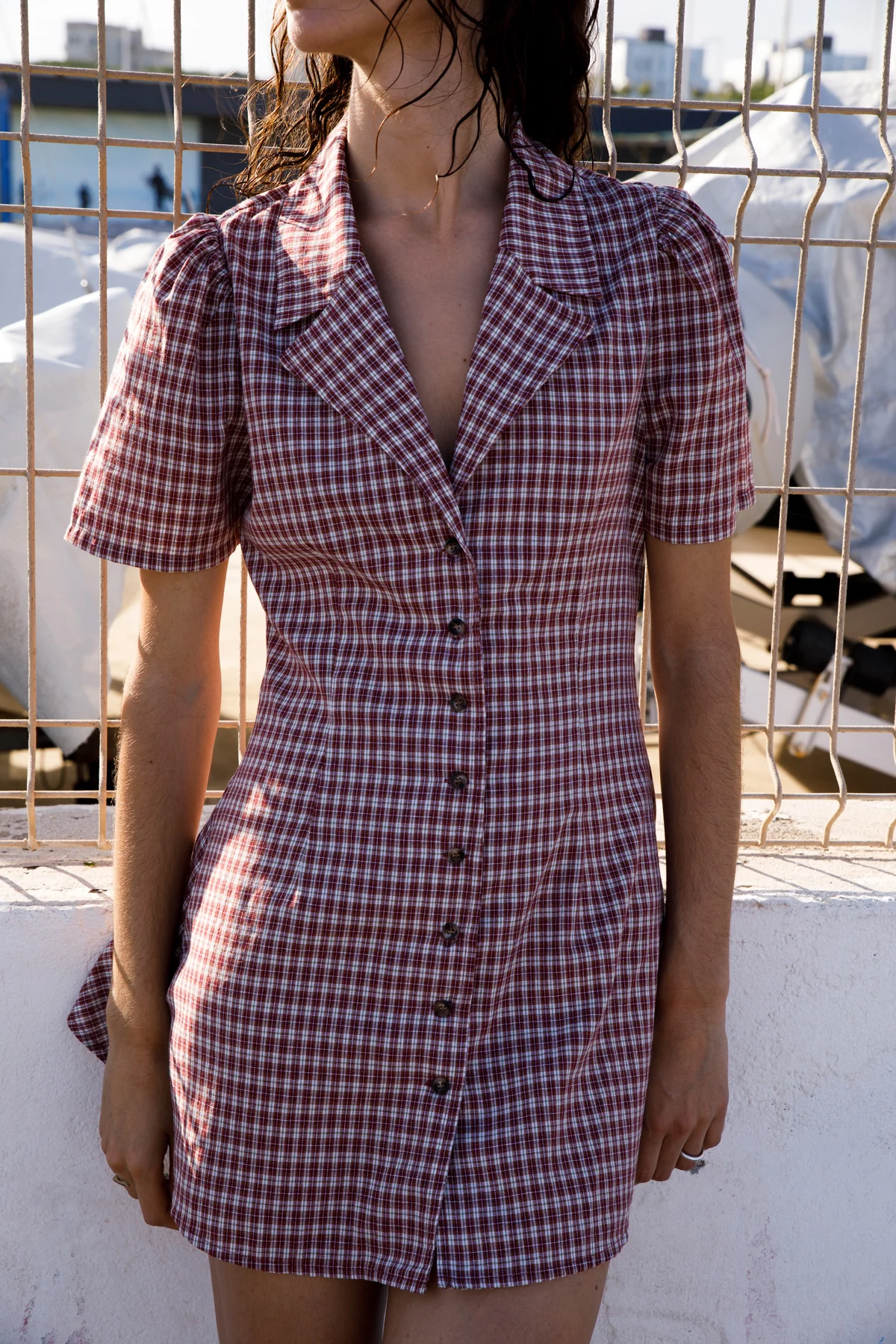 Jam Gingham Button Front Dress