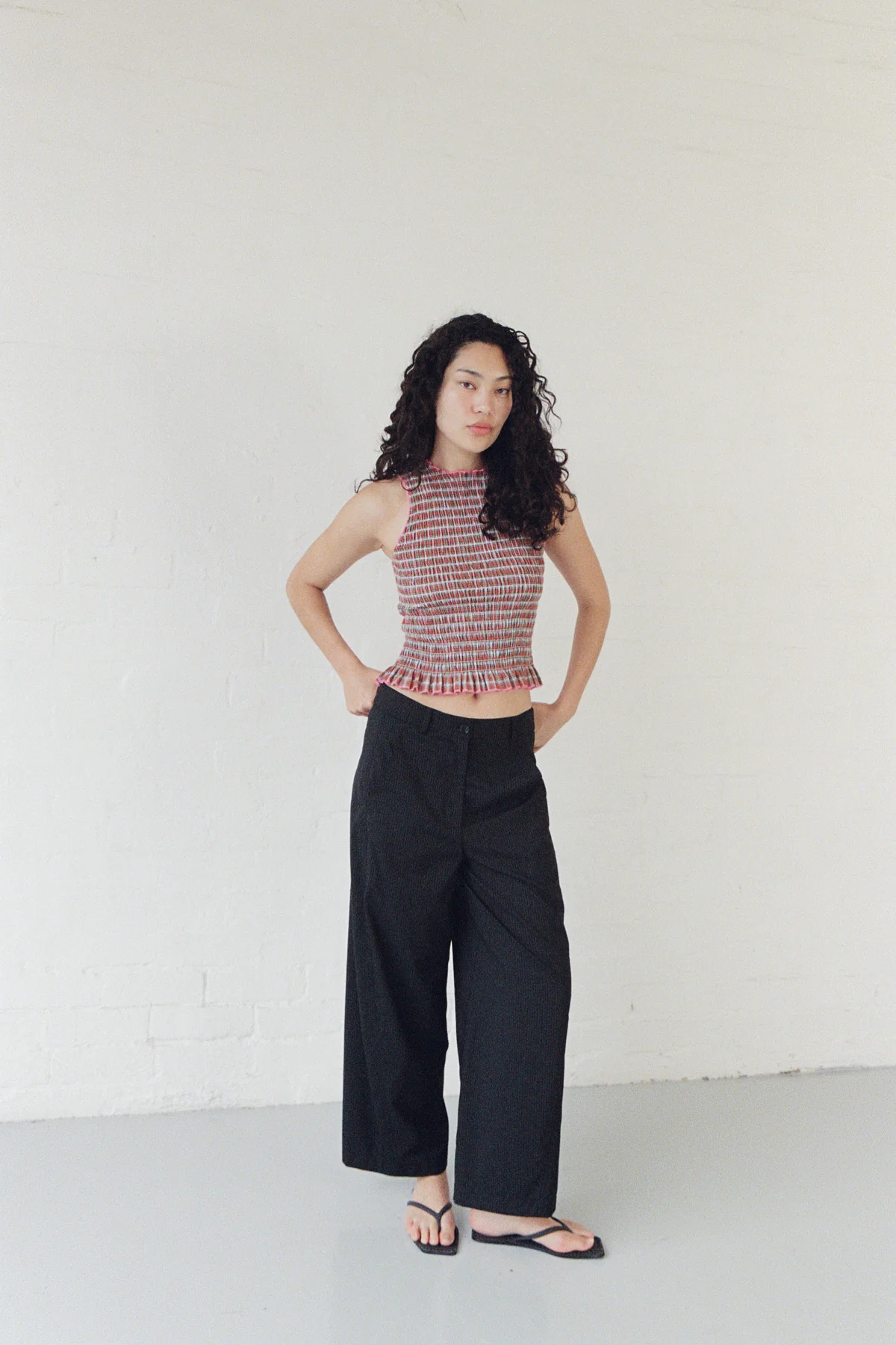 A fitted baby tank with frill finishes and contrast babylock.